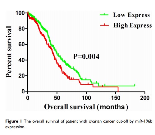 miR-196b 的高表达预测卵巢癌患者的预后不良