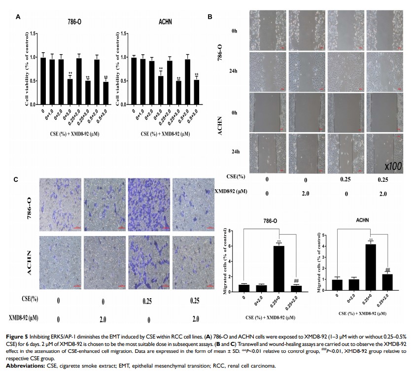 姜黄素可通过 ERK5/AP-1 信号通路负调节香烟烟雾诱导的肾细胞癌上皮间质转化