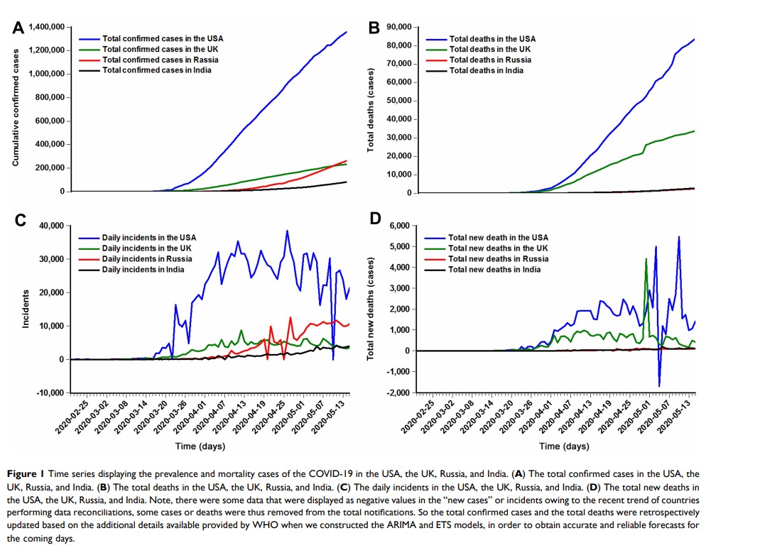 预计美国、英国、俄罗斯和印度 2019 冠状病毒病(COVID-19)的患病率和死亡率