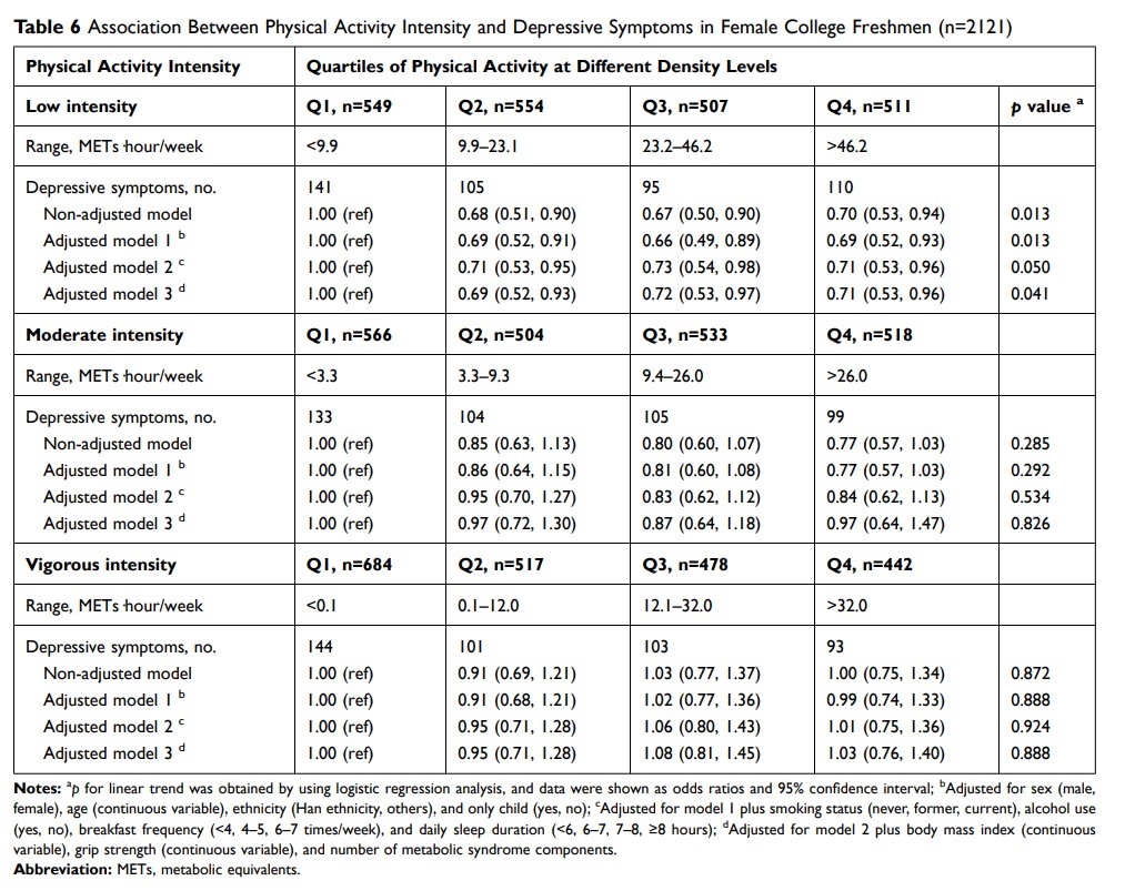 大学生的体育活动强度与抑郁症状:青少年健身改善策略(FITYou)项目
