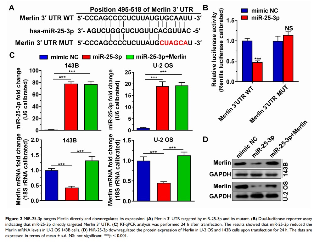 MiR-25-3p 通过下调骨肉瘤中 Merlin 的表达,起致癌 MicroRNA 的作用