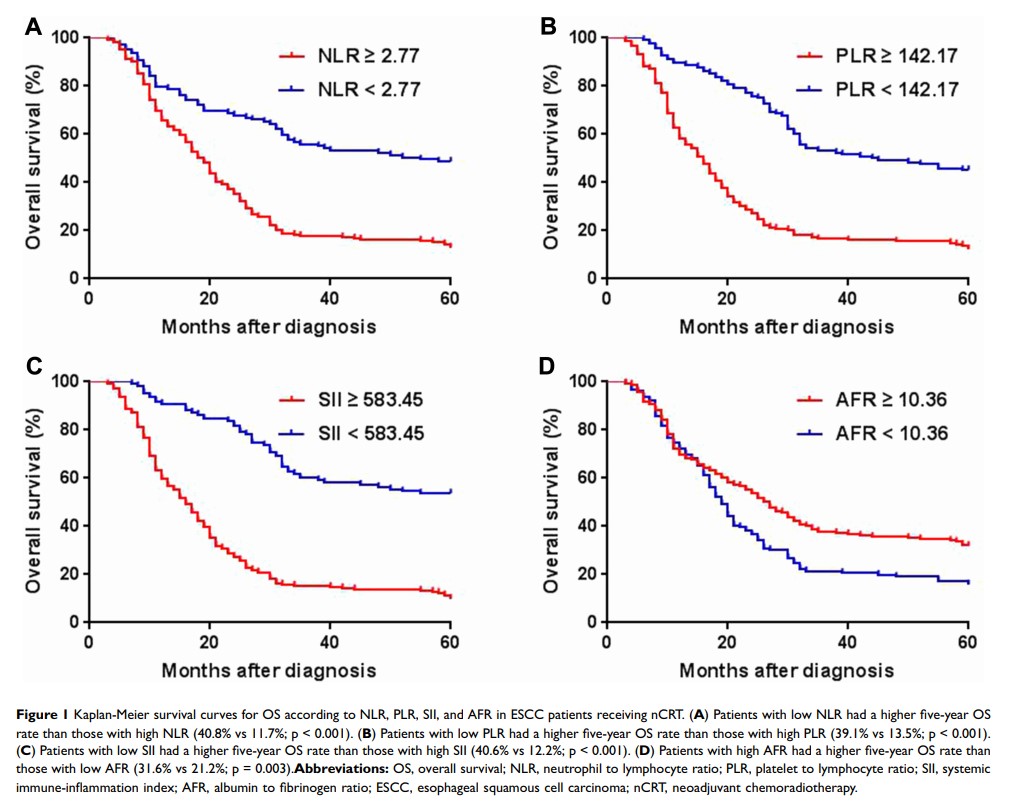 通过血液标志物预测接受新辅助放化疗治疗的局部晚期食管鳞状细胞癌患者的预后和不良事件
