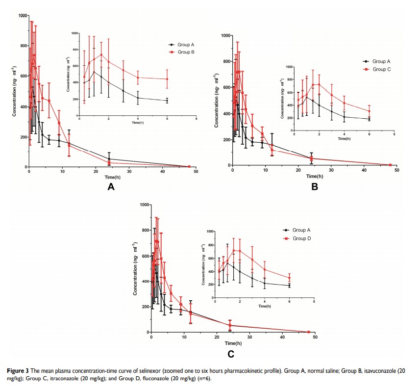 采用 UPLC-MS/MS 方法测定艾沙康唑、伊曲康唑和氟康唑对 Selinexor 在大鼠体内药代动力学的影响