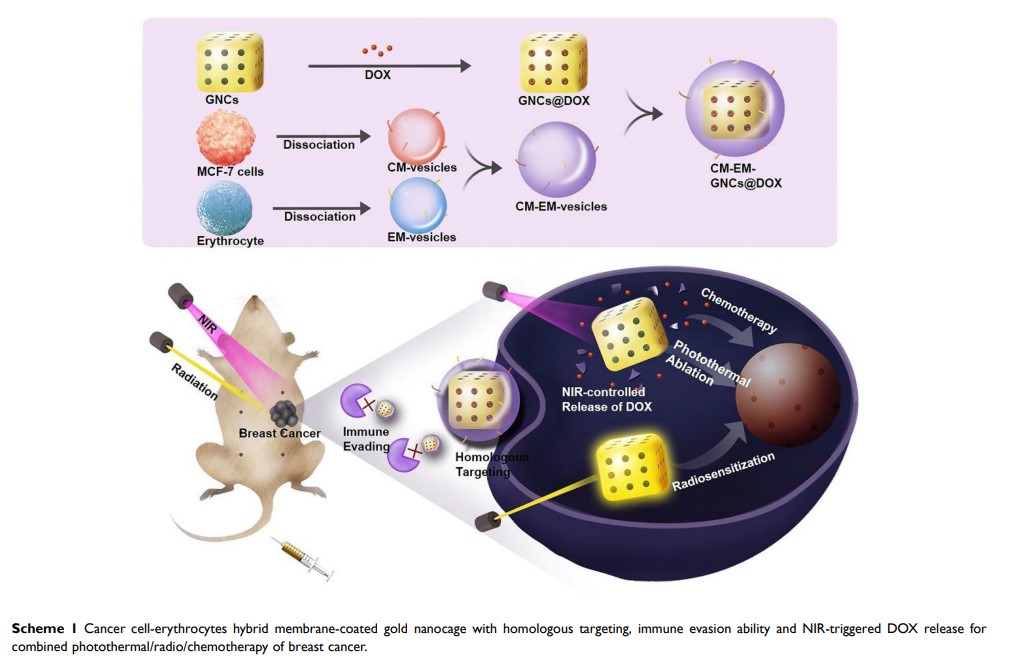 癌细胞-红细胞杂化膜包覆的金纳米笼用于乳腺癌的近红外光激活的光热/放射/化疗
