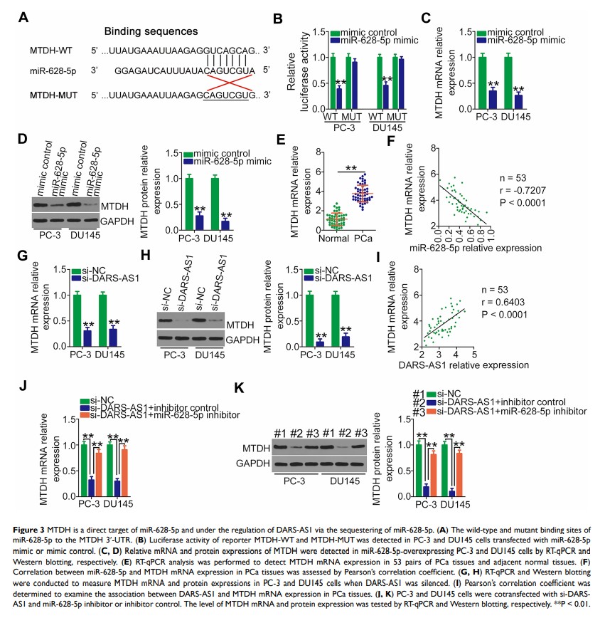 长非编码 RNA DARS-AS1 通过调节 MicroRNA-628-5p/MTDH 轴促进前列腺癌的进展