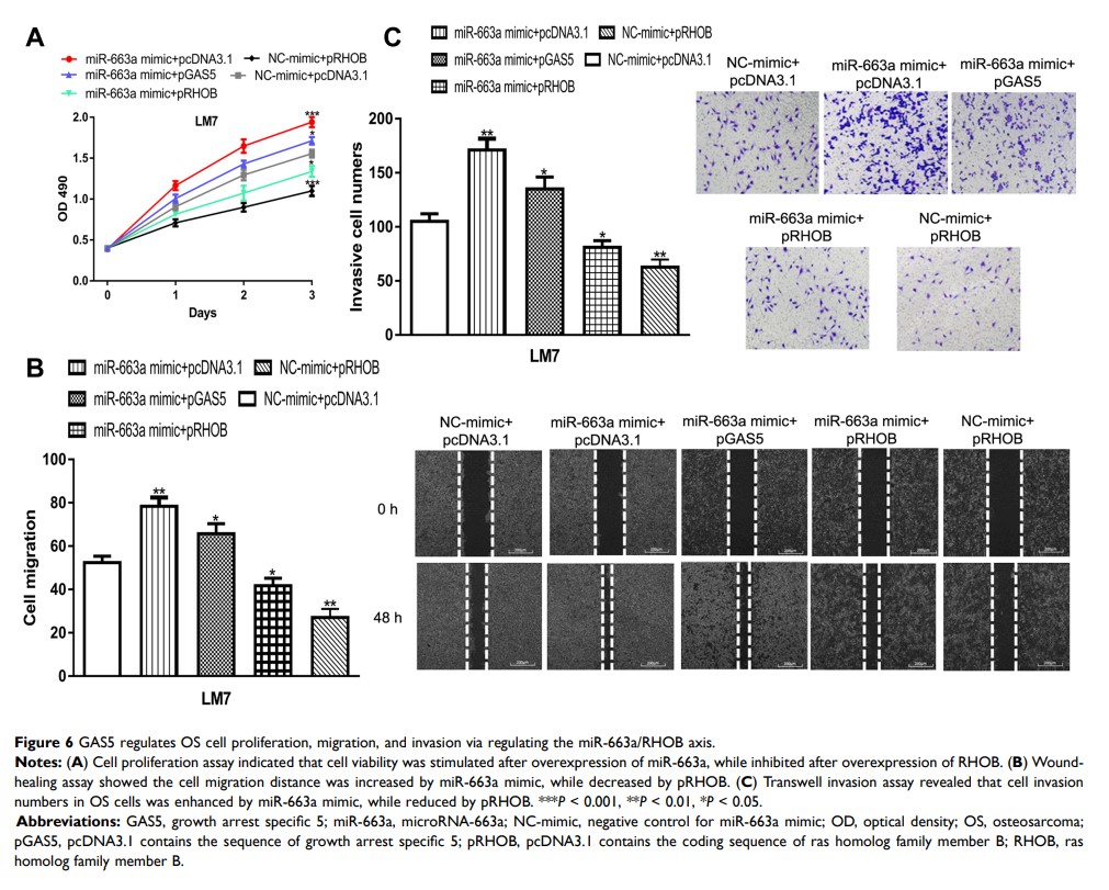 LncRNA GAS5 通过海绵化 miR-663a 来调控 RHOB,从而调节骨肉瘤细胞的增殖、迁移和侵袭