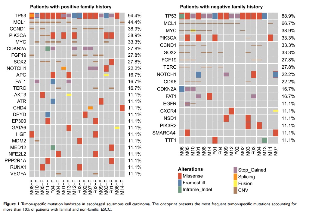 具有遗传家族史的食管鳞状细胞癌的遗传异质性