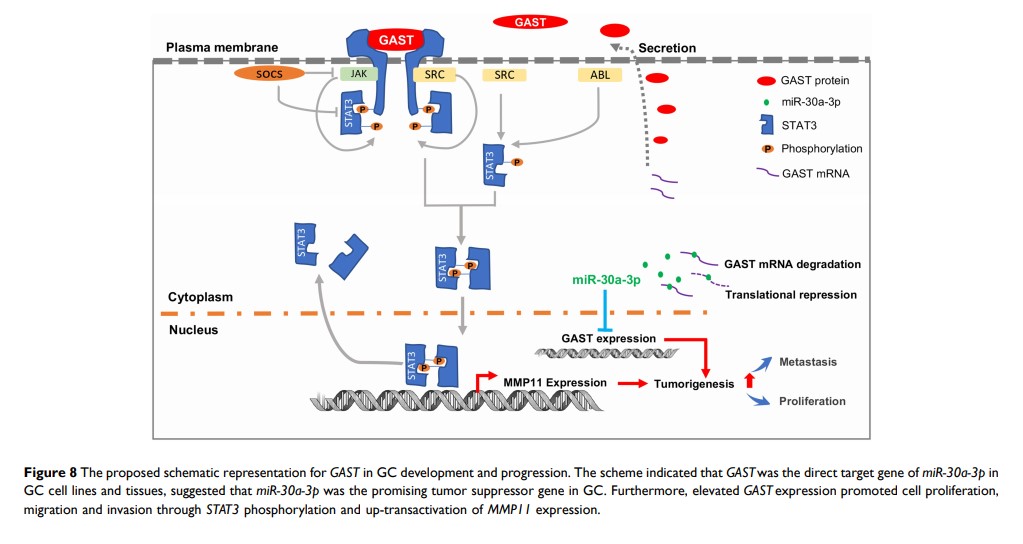 MiR-30a-3p/Gastrin 的失调可通过 STAT3/MMP11 信号通路促进胃癌的肿瘤生长和侵袭