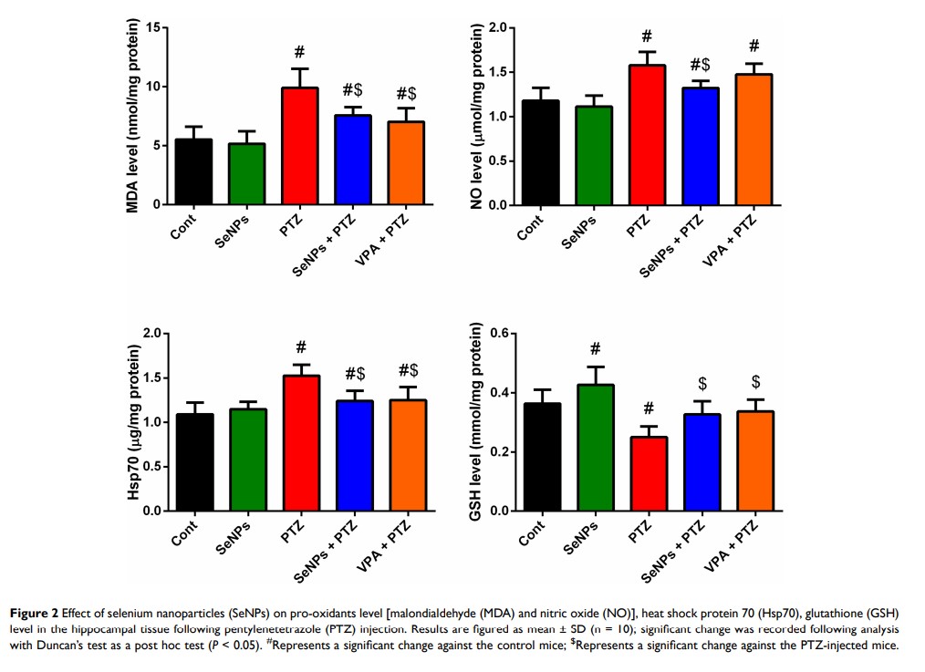 戊四氮诱发的小鼠癫痫发作中,硒纳米颗粒的治疗前逆行为、氧化损伤、神经元丢失和神经化学变化