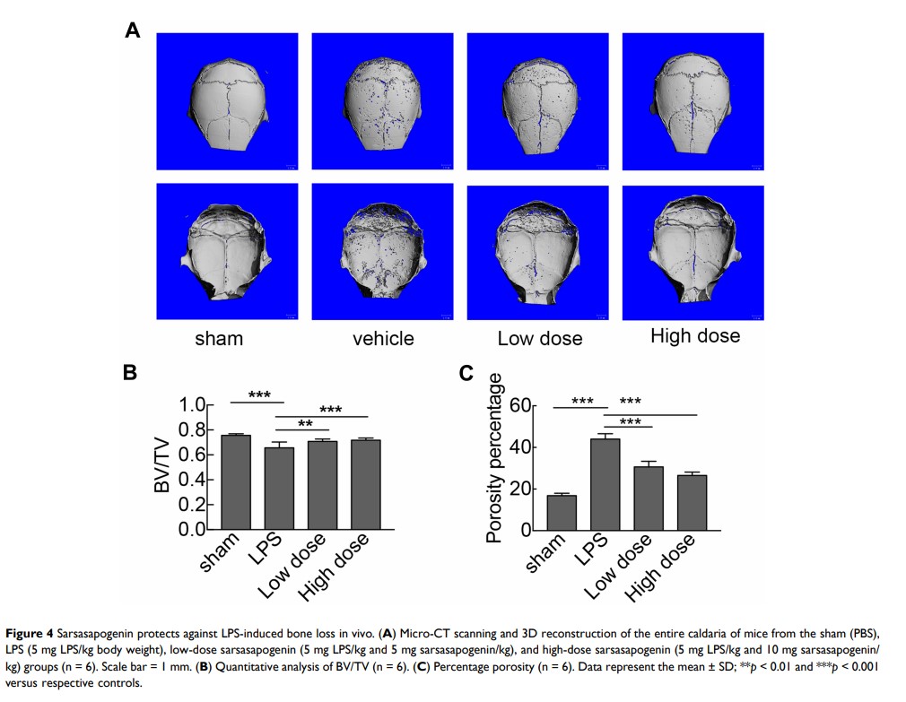 知母皂苷元在体外抑制 RANKL 诱导的破骨细胞生成并在体内预防脂多糖诱导的骨丢失