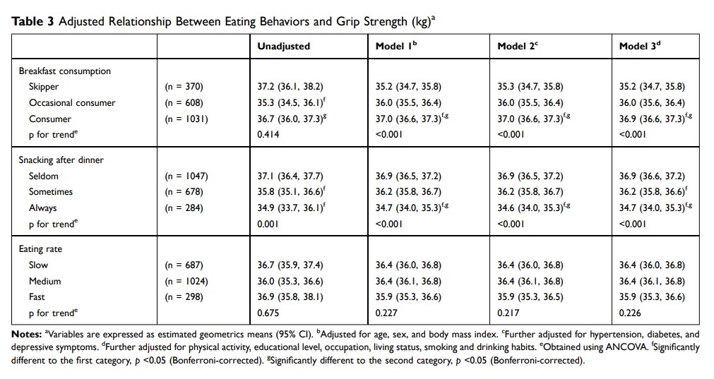 中国成年人饮食行为与握力之间的关系:一项基于人群的横断面研究