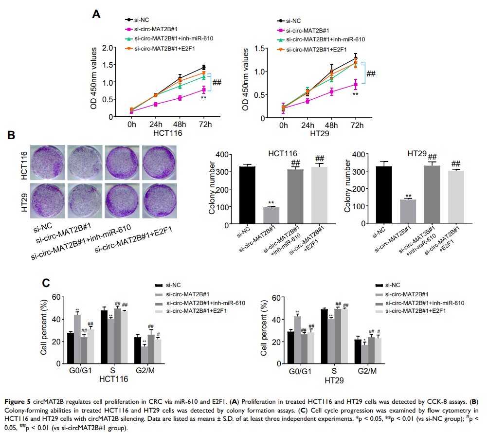 环状 RNA MAT2B 通过海绵化 miR-610 诱导大肠癌增殖,导致 E2F1 表达增加