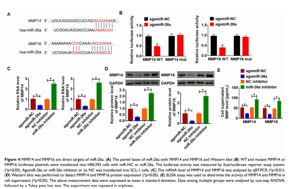 microRNA-26a 通过直接靶向 MMP14 和 MMP16 可抑制皮肤鳞状细胞癌的癌细胞增殖、迁移和侵袭