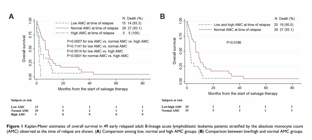 早期复发的 B 谱系急性淋巴细胞白血病成年患者,其复发时的正常绝对单核细胞计数与首次抢救治疗后的存活率改善相关