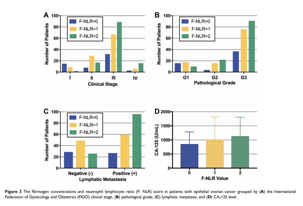血浆纤维蛋白原浓度和中性粒细胞与淋巴细胞比率(F-NLR)相结合作为上皮性卵巢癌的预后因素
