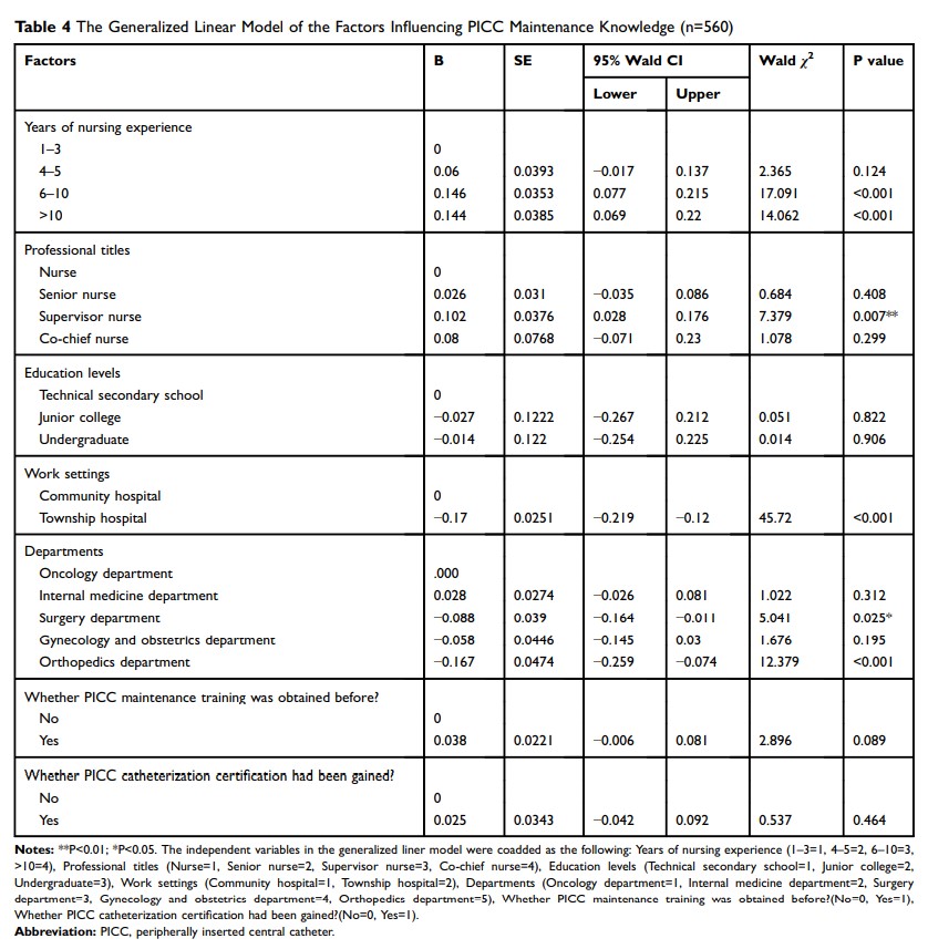 中国基层医院护士对外周插入的中央导管维护的态度和知识:一个横断面调查
