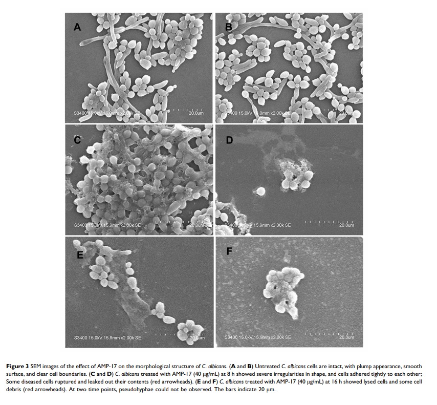 抗菌肽 AMP-17 通过破坏其细胞壁和细胞膜完整性对白色念珠菌产生影响