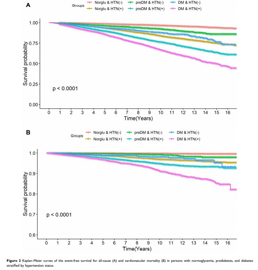 血糖正常、糖尿病前期和糖尿病患者的收缩压、心血管死亡率和全因死亡率