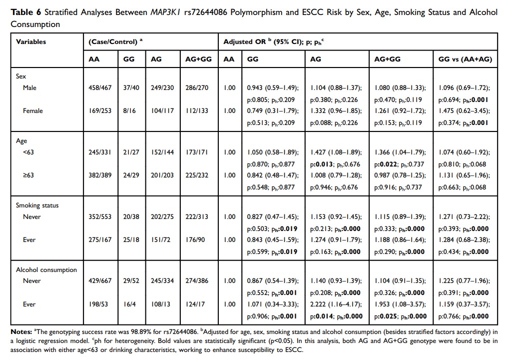 MAP3K1 SNPs 和中国人群食管鳞状细胞癌易感性的危险因素之间的关联性研究:病例对照研究