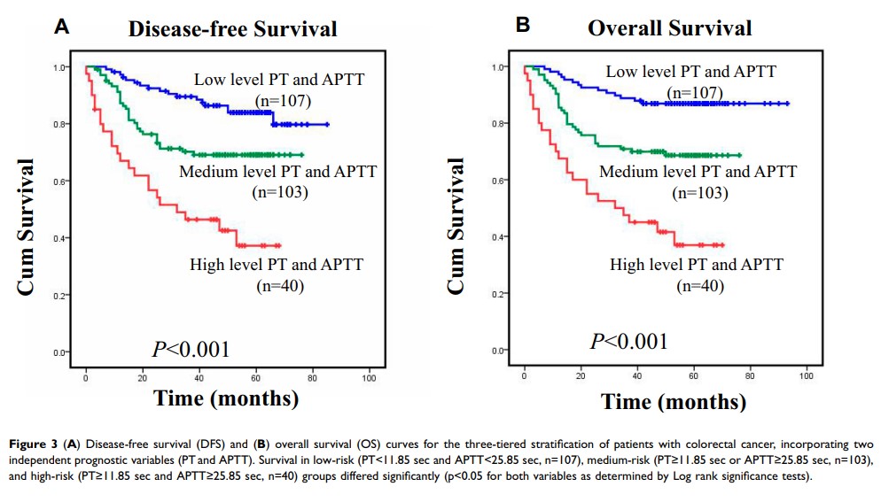 大肠癌患者预后不良的预测:术前凝血酶原时间(PT)和活化部分凝血活酶时间(APTT)的升高