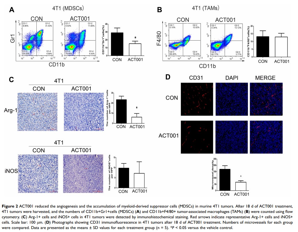 通过抑制 NF-κB,ACT001 对小鼠三阴性乳腺癌细胞株 4T1 的抗癌作用