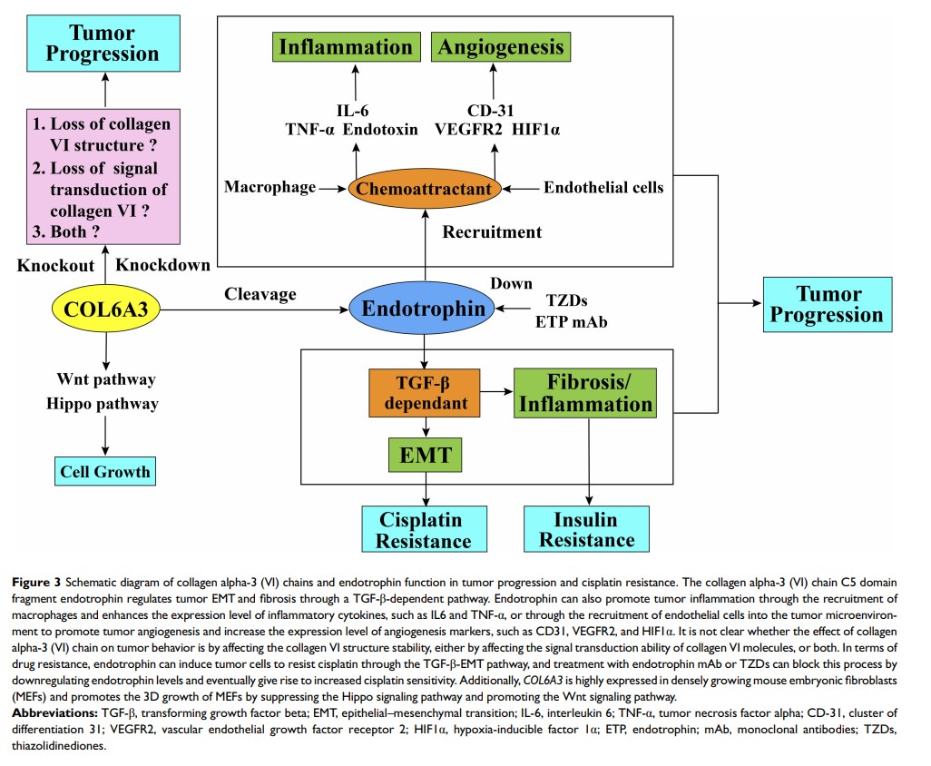 胶原蛋白 α-3(VI)链及其裂解的 C5 结构域片段内啡肽在癌症中的生物学作用