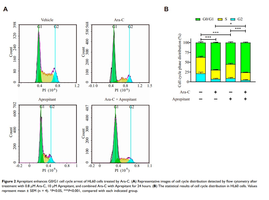 阿瑞匹坦在体内和体外增加急性骨髓性白血病细胞对胞嘧啶阿拉伯糖苷的细胞毒性效应的敏感性