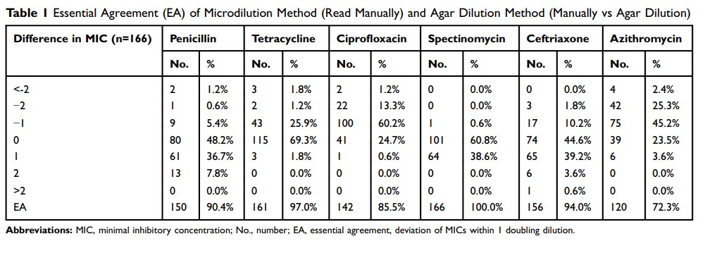 微量稀释法与琼脂稀释法进行淋球菌抗生素敏感性试验的比较