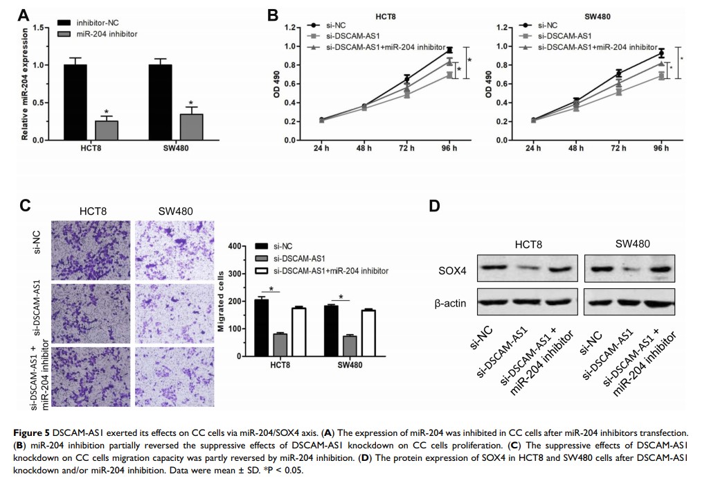 LncRNA DSCAM-AS1 通过调节 miR-204/SOX4 轴促进结肠癌细胞的增殖和迁移