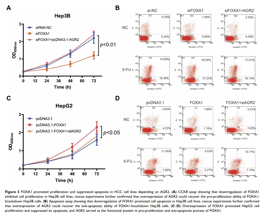 FOXA1 通过直接调节 miR-212-3p/FOXA1/AGR2 信号通路来促进 HCC 细胞增殖并抑制细胞凋亡