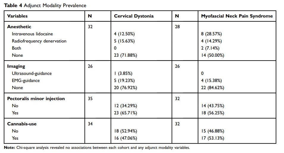 Benefits, Safety, and Adjunct Modality Prevalences of Long-Term Botulinum Toxin Injections for Cervical Dystonia and Myofascial Neck Pain: A Retrospective Cohort Study