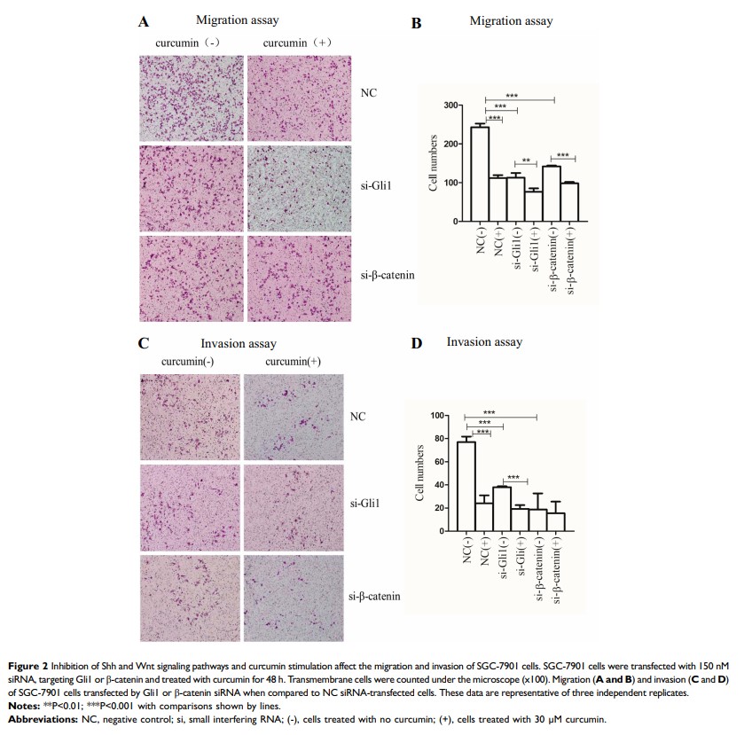 姜黄素可通过 Gli1-β-联蛋白影响胃癌细胞的迁移、侵袭和细胞骨架重构