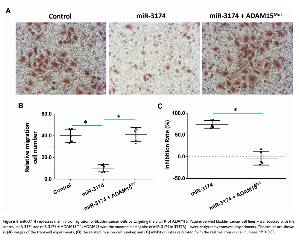 microRNA miR-3174 遏制 ADAM15 的表达并抑制人源性膀胱癌细胞的增殖