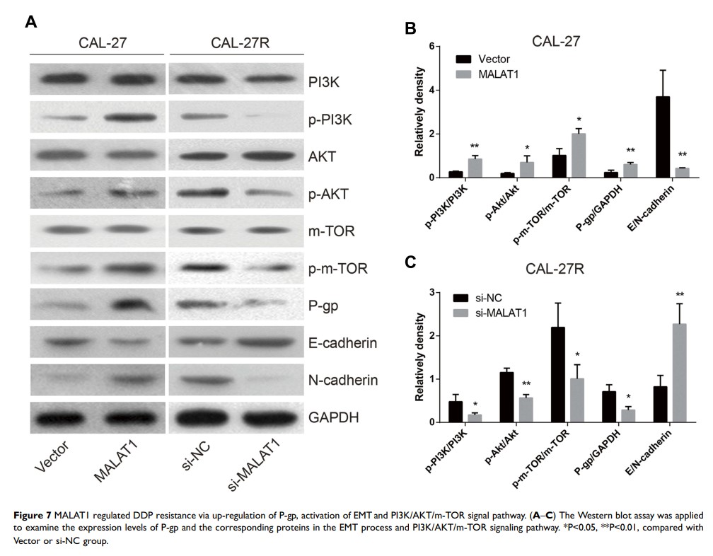 lncRNA MALAT1 通过 PI3K/AKT/m-TOR 信号通路促进口腔鳞状细胞癌的 EMT 过程和顺铂耐药性