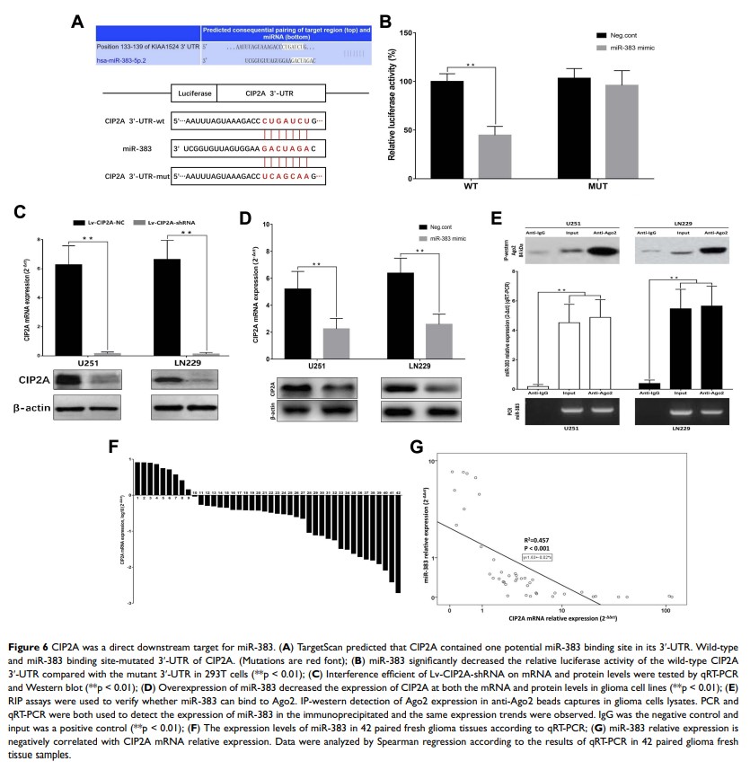 miR-383 下调癌基因 CIP2A 以影响胶质瘤的增殖和侵袭
