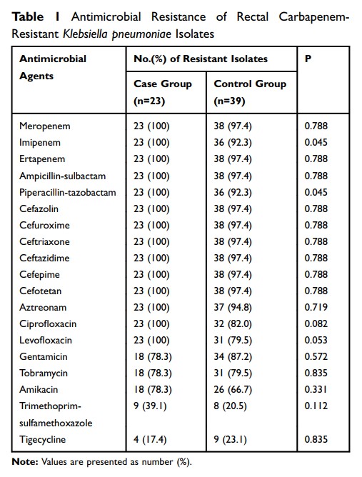 碳青霉烯耐药性肺炎克雷伯菌携带者(通过直肠拭子分析),发生继发性碳青霉烯类耐药肺炎克雷伯菌临床感染的危险因素