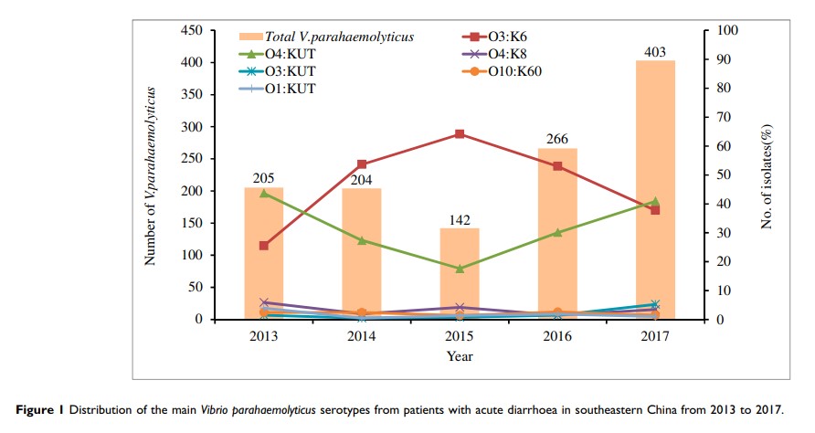 2013 年至 2017 年中国东南地区急性腹泻患者分离而得的副溶血性弧菌的病原特征和变异