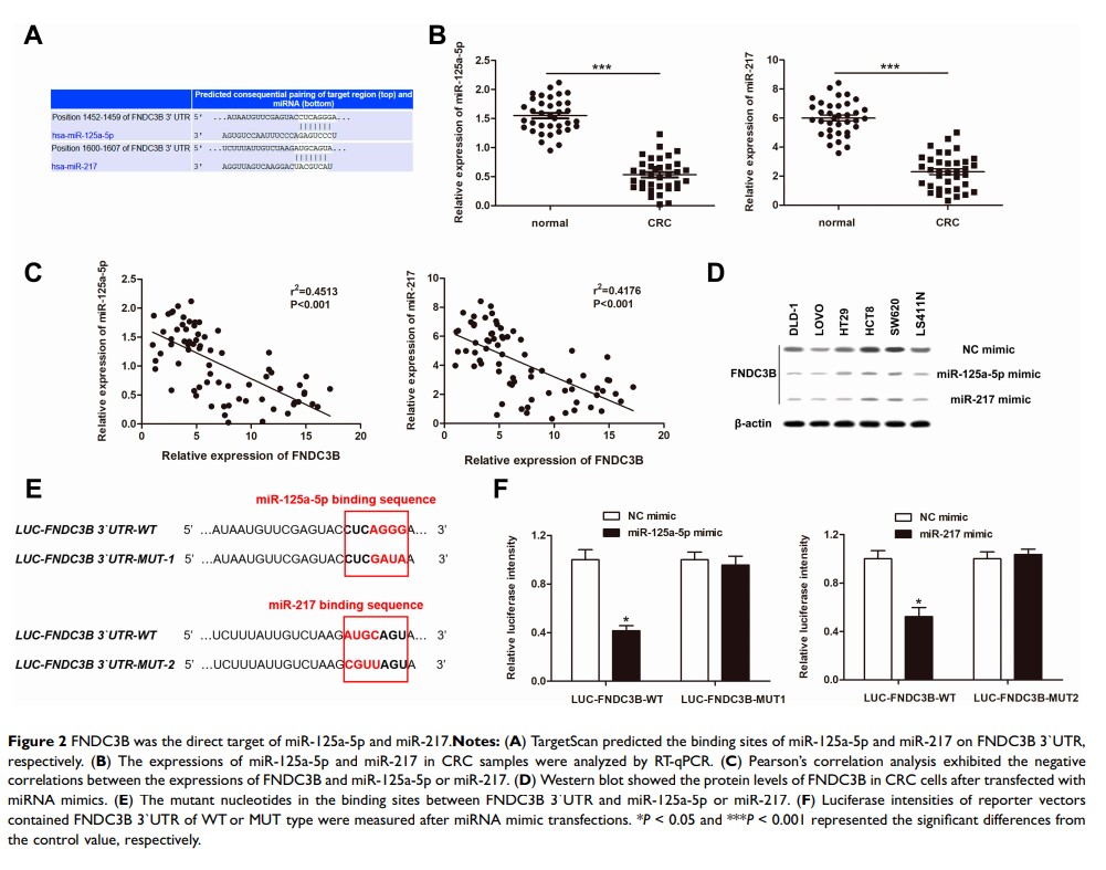 miR-125a-5p 和 miR-217 靶向 FNDC3B,后者通过 PI3K/mTOR 信号传导促进大肠癌细胞的增殖和侵袭