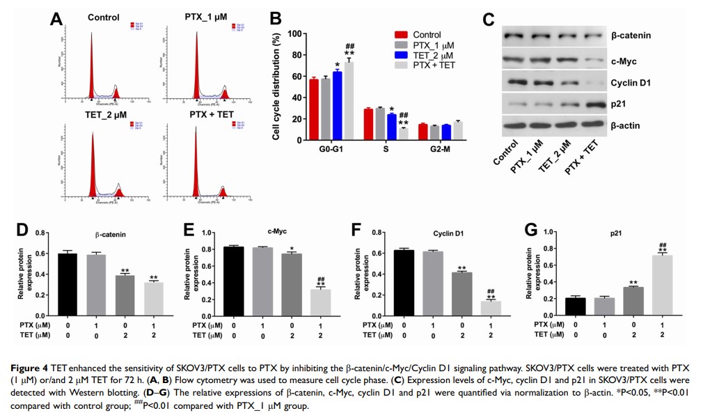 粉防己碱经由 β-连环蛋白信号通路诱导细胞凋亡及阻滞细胞周期来逆转人卵巢癌对紫杉醇的耐药性