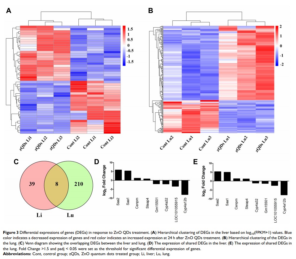 实验鼠暴露于 ZnO 量子点后肝和肺的基因表达谱