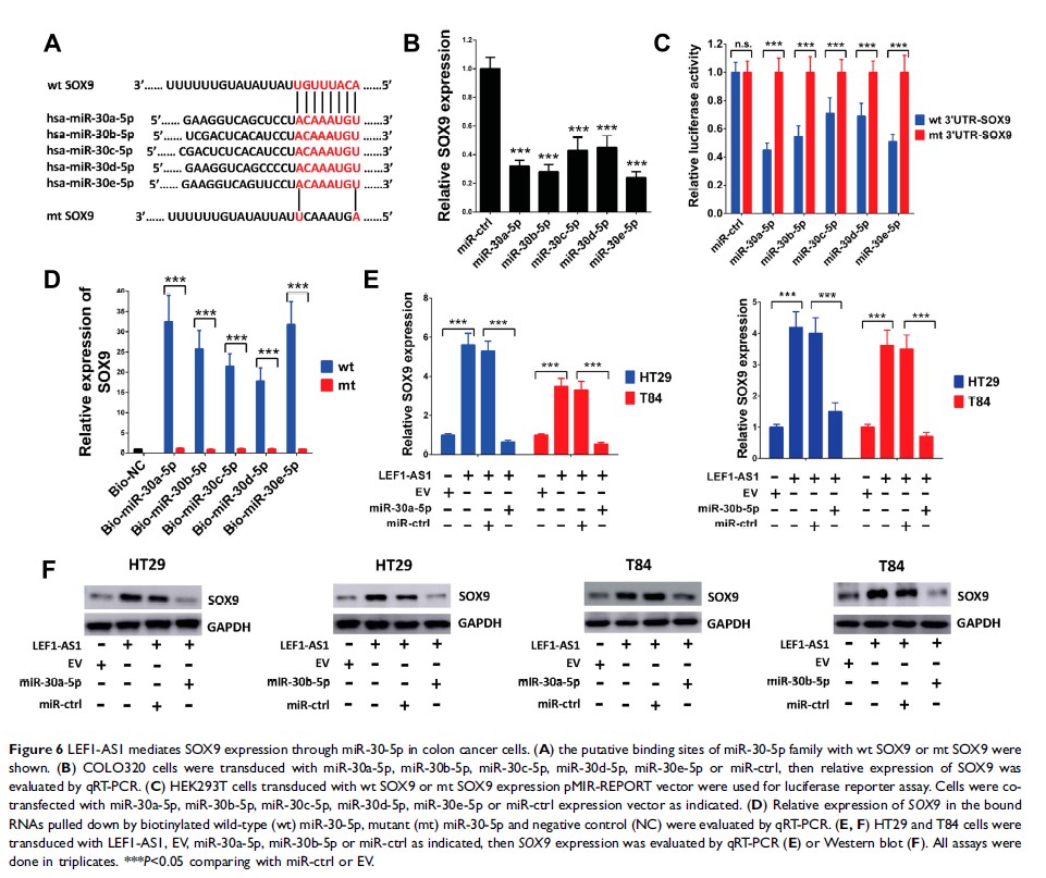 长非编码 RNA LEF1-AS1 通过 miR-30-5p/SOX9 轴促进结肠癌细胞的迁移、侵袭和转移