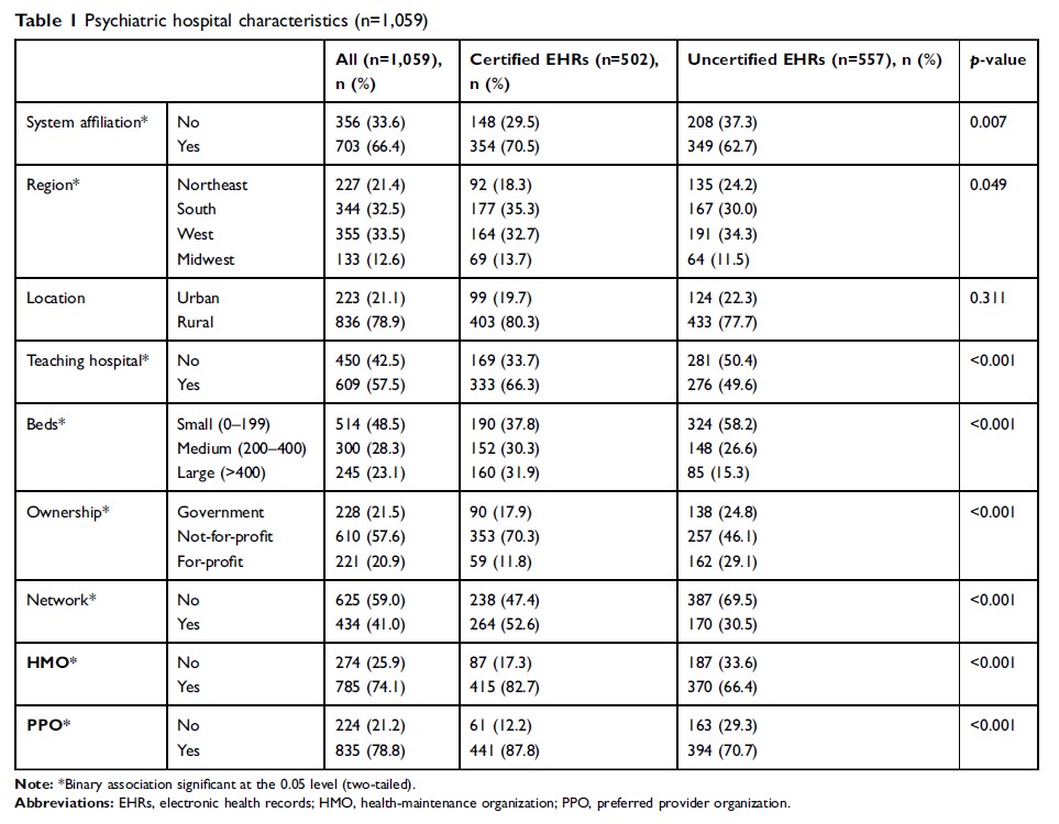 美国精神病医院中,与采用合格的电子健康档案( EHR)相关的特征