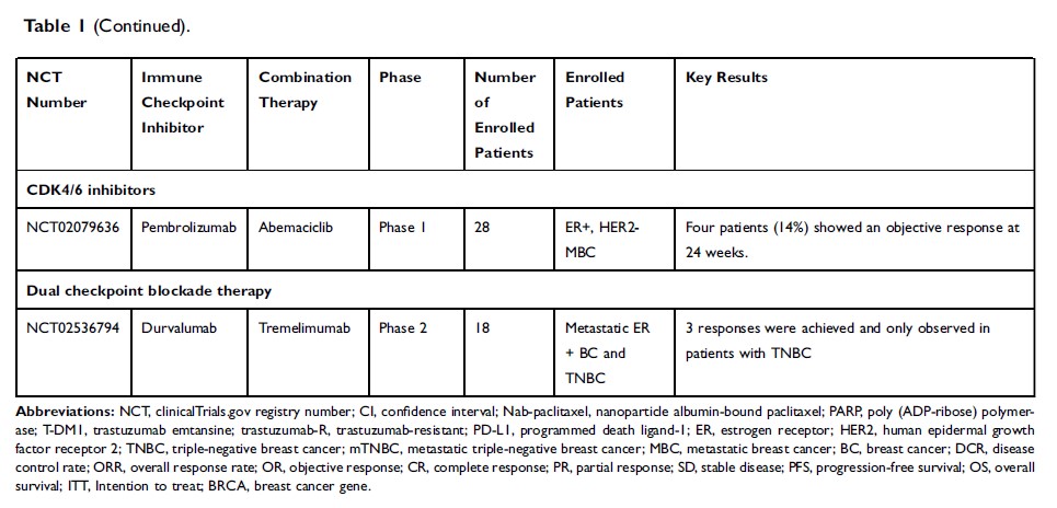 转移性乳腺癌检查点免疫治疗的联合策略