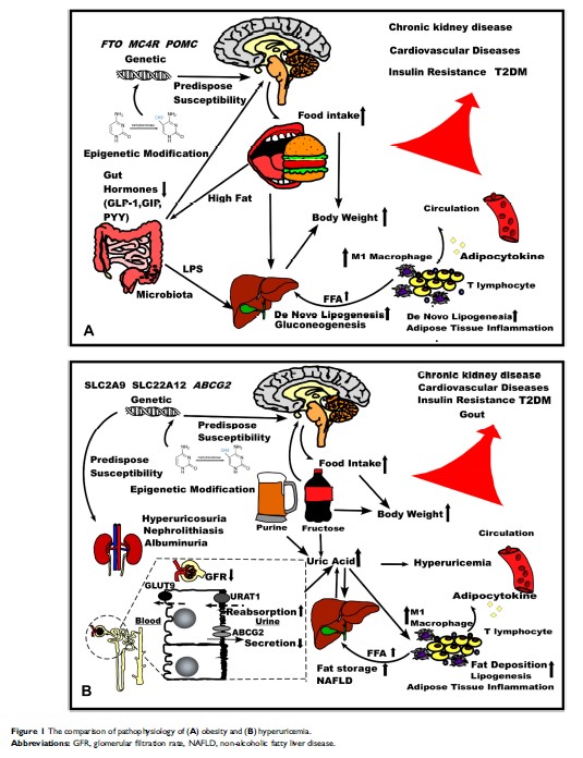肥胖与高尿酸血症之间的趋同关系,特别是对代谢性疾病和合理治疗的意义