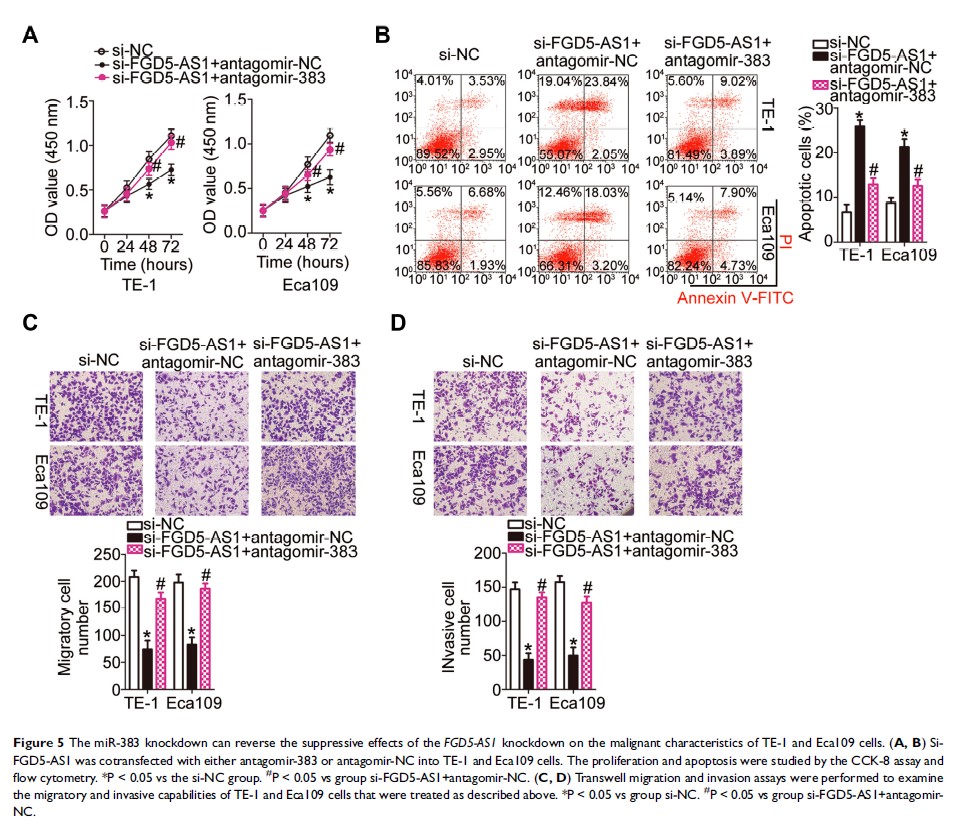 长非编码 RNA FGD5-AS1 充当在 microRNA-383 上的竞争性内源 RNA,通过增加 SP1 表达来增强食管鳞状细胞癌的恶性特征