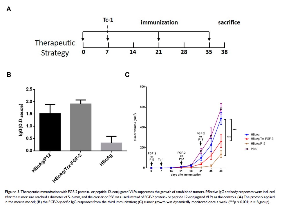 呈现 FGF-2 蛋白或已确定的抗原肽的病毒样颗粒可促进小鼠的抗肿瘤免疫反应