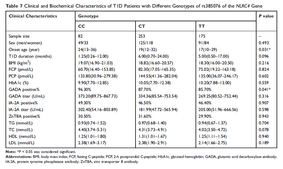 NLRC4 基因的多态性与 1 型糖尿病患者的发病年龄、GADA 阳性率和餐后 2 小时 C 肽相关