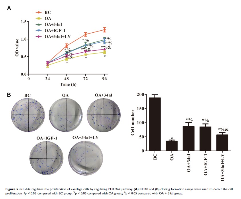 miR-34a 的下调通过激活 PI3K/Akt 信号通路促进大鼠骨关节炎软骨细胞的增殖并抑制细胞凋亡