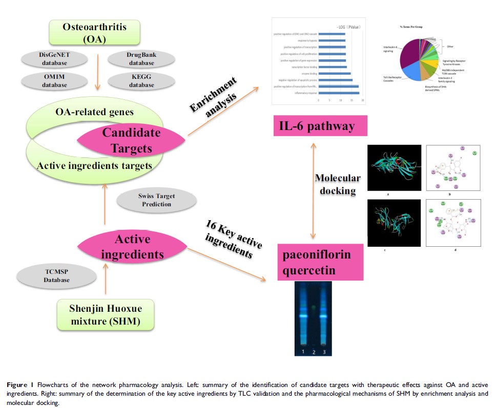 网络药理学方法和薄层色谱分析方法相结合对伸筋活血合剂的关键活性成分及其在骨关节炎治疗中的消炎和镇痛作用进行验证