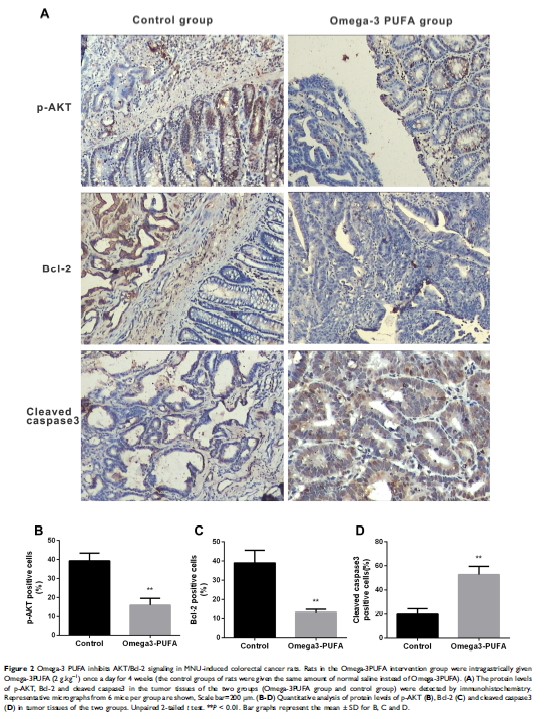 Omega-3PUFA 通过阻断止 PI3K/AKT/Bcl-2 信号传导减弱 MNU 诱导的大鼠结直肠癌